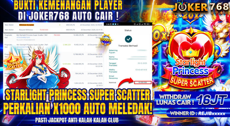 Bukti jackpot / February 4, 2026 Bukti WD Rp16.000.000 Joker768 dari Starlight Princess Super Scatter by adminjkr768 Read More