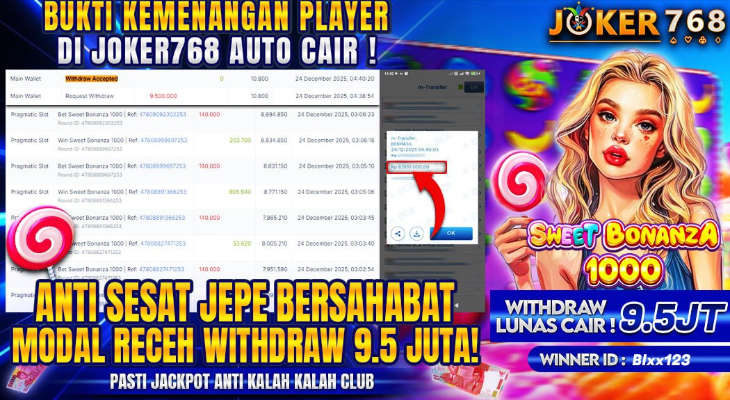 Posted in: Bukti jackpotTagged: Agen Slot Terbaik, bukti jp joker768, Bukti Menang Slot, Cara Menang Slot, Daftar Joker768, Info Slot Gacor, Jackpot 9 Juta, Jackpot Slot Online, joker768, Joker768 JP, joker768 terpercaya, Link Alternatif Joker768, Login Joker768, Menang Besar Slot., Multiplier 1000, Pragmatic Play Gacor, Slot Anti Rungkad., slot gacor 2026, slot modal receh, slot online indonesia, Strategi Sweet Bonanza, sweet bonanza 1000, Withdraw Lunas