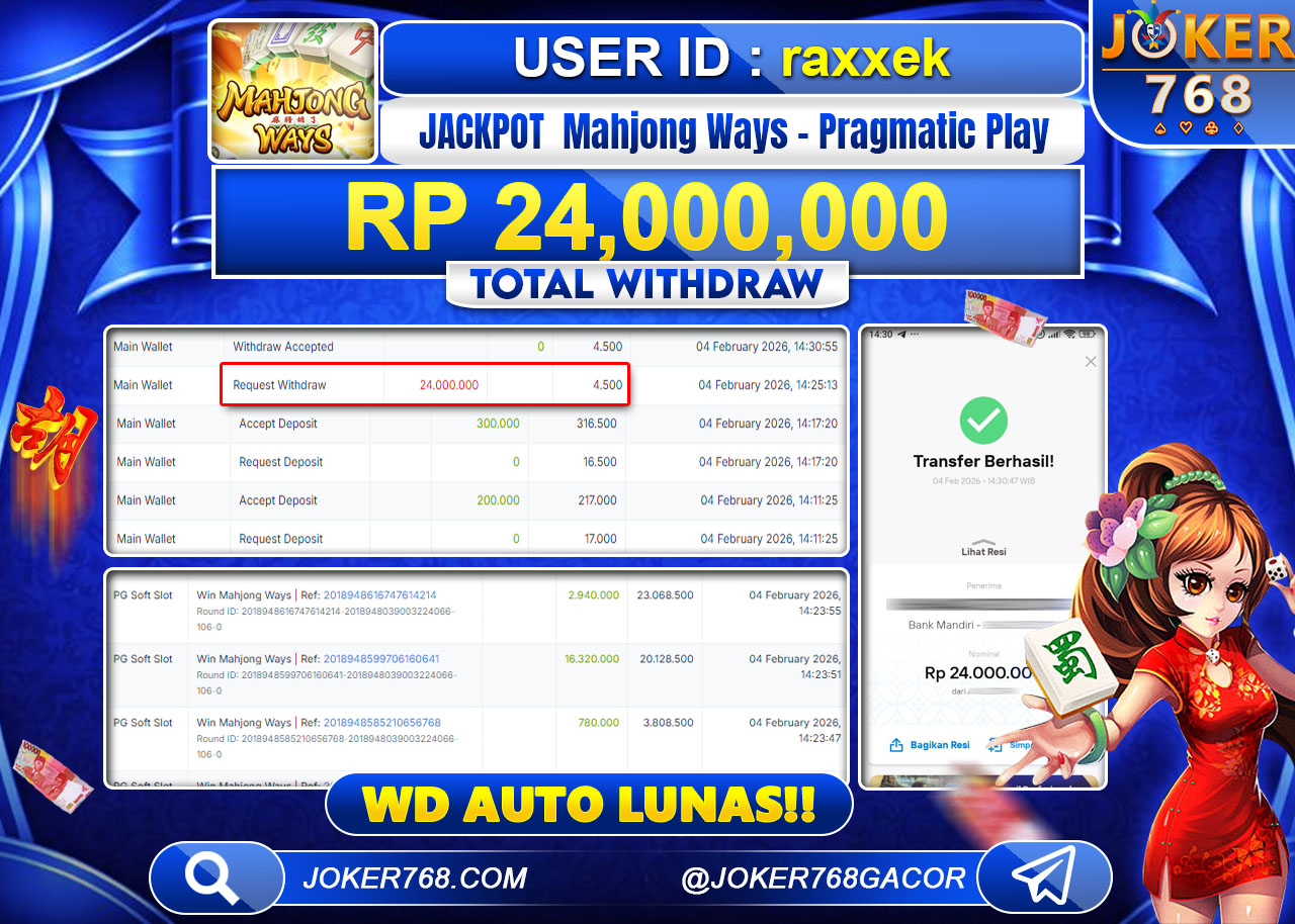 WD Rp24 Juta Mahjong Ways Pragmatic Play di Joker768
