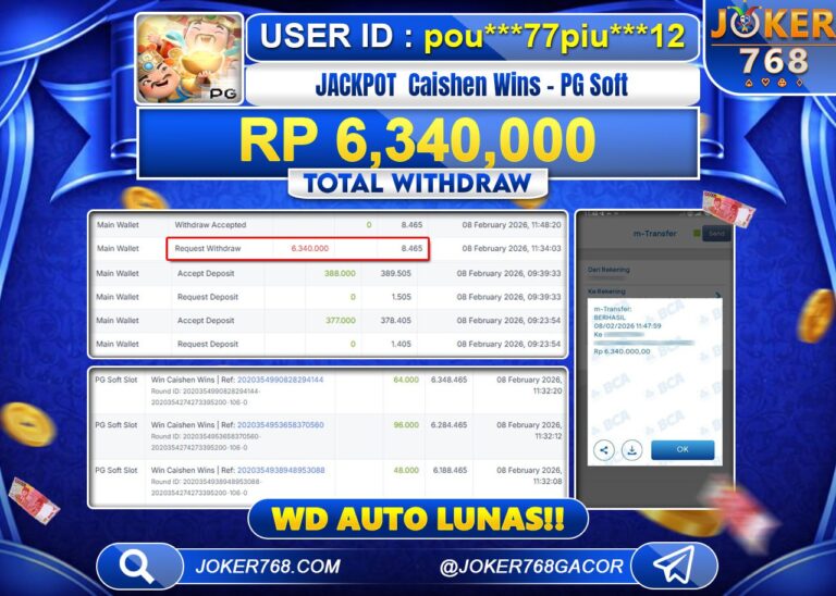 BUKTI JP JOKER768 – CAISHEN WINS PG SOFT WD AUTO LUNAS RP 6.340.000