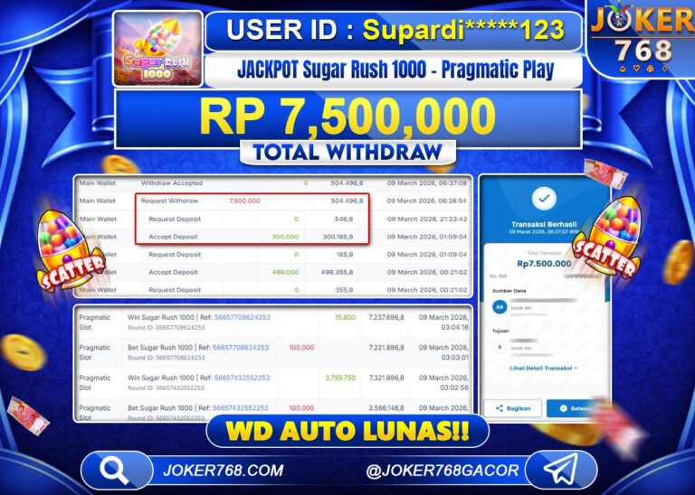 BUKTI JP JOKER768 SUGAR RUSH 1000 RP 7.500.000 WD AUTO LUNAS BUKTI JP JOKER768 SUGAR RUSH 1000 RP 7.500.000 WD AUTO LUNAS