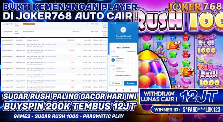 BUKTI JP JOKER768 – SUGAR RUSH 1000 PRAGMATIC PLAY WD AUTO CAIR IDR10.000.000