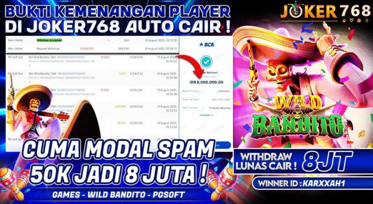 BUKTI JP JOKER768 – WILD BANDITO PG SOFT WD AUTO CAIR IDR 8.000.000