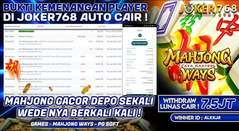 Bukti JP Joker768 Auto Cair, Mahjong Ways Gacor Withdraw IDR 7.500.000