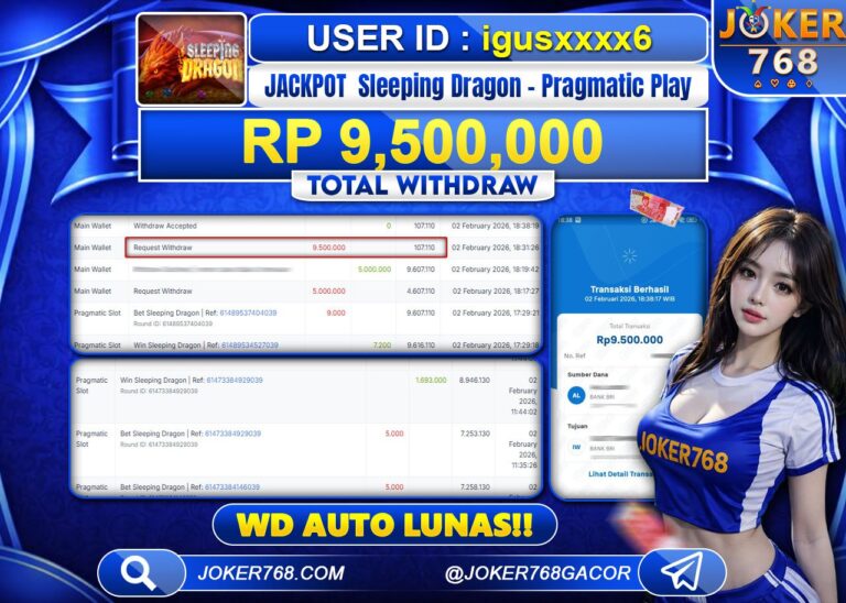 Bukti JP JOKER768 Sleeping Dragon Pragmatic Play WD Auto Lunas RP 9.500.000